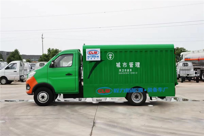 程力電動車環衛車型最近密集上市,該款為程力生產的純電動東風密閉式桶裝垃圾車。程力整車型號:CL5030XTYBEV,軸距:2850mm,上裝容積:11桶,底盤電機最大功率:80KW,電池組額定電壓:374.4V。